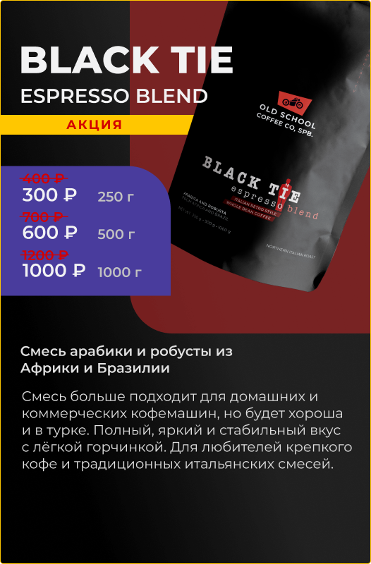Наш кофе смешан и обжарен так, что отлично подходит для всех способов приготовления: он хорош и в джезве (турке), и в френч-прессе, и в Харио, и в Кемексе.